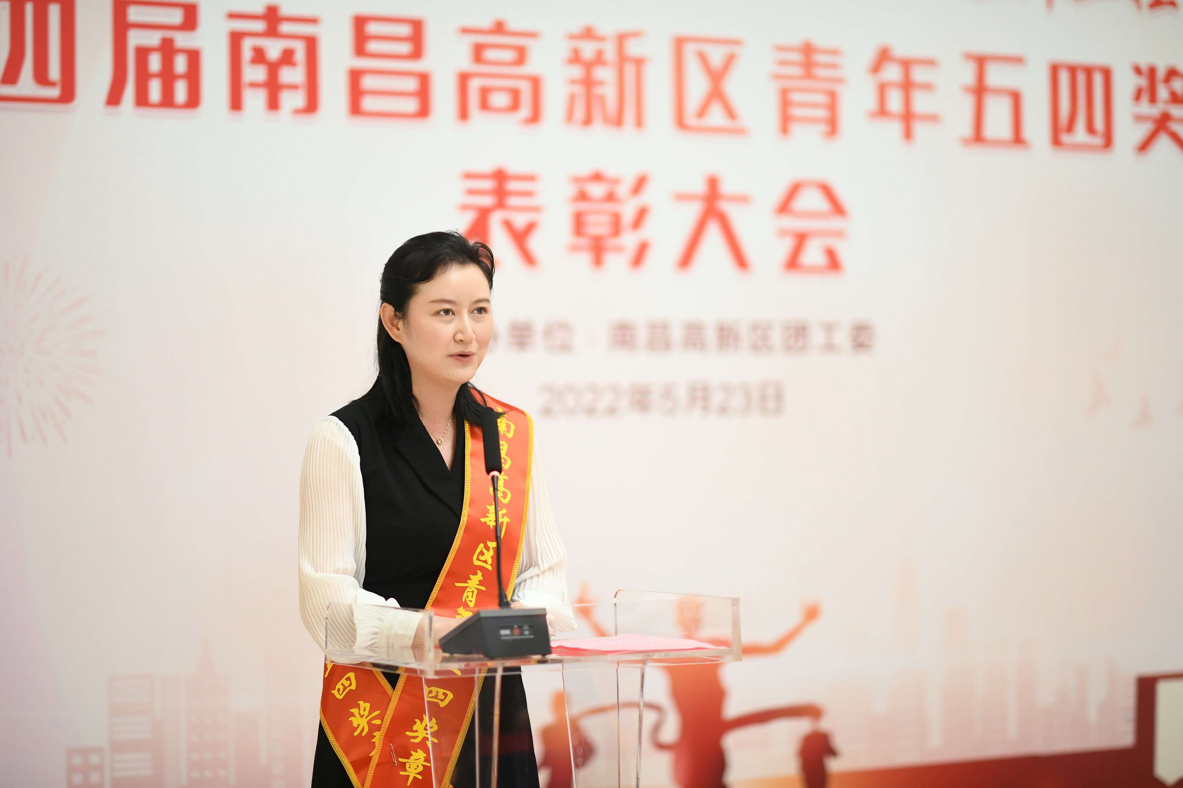 “面向未來,我將堅定理想信念,自覺擔當盡責,發(fā)揮青年先鋒力量,團結(jié)帶領(lǐng)公司廣大團員青年在投身大南昌都市圈發(fā)展及現(xiàn)代化江西建設(shè)過程中建立新功業(yè)……”5月23日,在第四屆南昌高新區(qū)青年五四獎?wù)卤碚么髸希酱筇劁搱F委書記、辦公室主任張丹丹受到表彰,并作為非公企業(yè)代表發(fā)言。