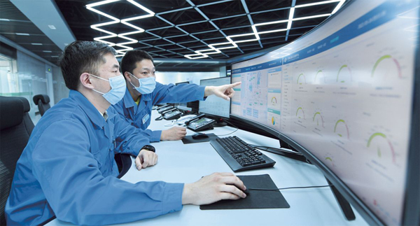 圖為首鋼京唐公司技術(shù)人員正在查看京唐公司安全管理平臺運行情況。 (本報記者 楊立文 攝)