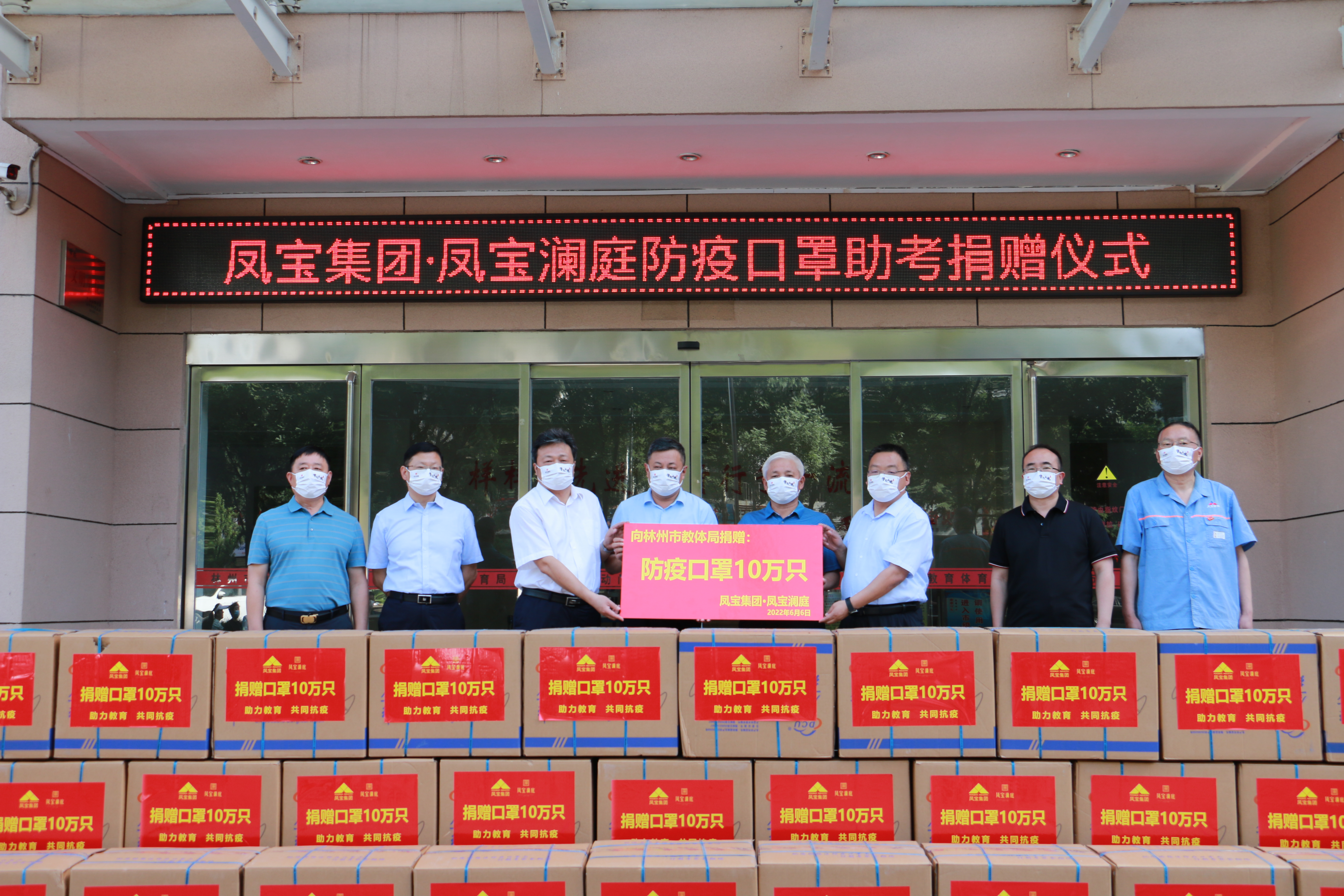 2022年6月6日,“鳳寶集團·鳳寶瀾庭防疫口罩助考捐贈儀式”在林州市教體局舉行,林州市相關領導、鳳寶集團領導李靜敏、李志偉等參加了捐贈儀式。