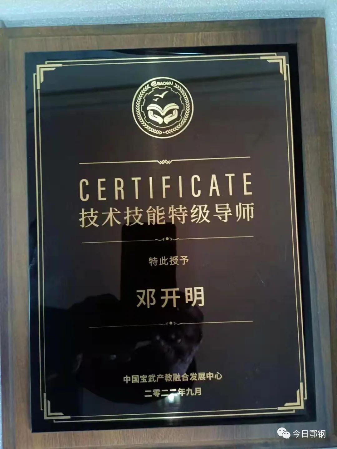 2019年榮獲寶武集團“智能制造技術應用攻關工作室”稱號,2020年榮獲湖北省“職工(勞模、工匠)創新工作室”稱號。