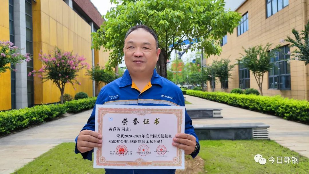 近日,在鄂州市中心血站舉辦的慶祝2023年世界獻血者日活動上,鄂鋼制造管理部黃睿濤獲得2020-2021年度“全國無償獻血奉獻獎金獎”。