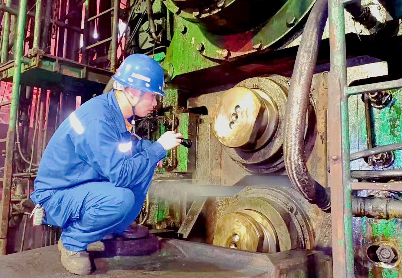 作業率是整個板材生產的重要指標,但由于設備長期滿負荷生產,功能精度無法滿足生產要求,導致工作輥竄動嚴重,生產過程中經常需要停機竄出的工作輥推回,嚴重影響作業效率。通過細心觀察,謝超林發現軋制力是影響工作輥竄動的主要因素,軋制力越大工作輥竄動越嚴重。于是,他通過對軋制規程的優化,合理設定每塊鋼板的軋制力,最大限度緩解了工作輥的竄動。此外,在處理工作輥竄動時,他結合軋機設備的內部結構,總結出在線處理輥的操作方法,有效提高了板材的作業率。