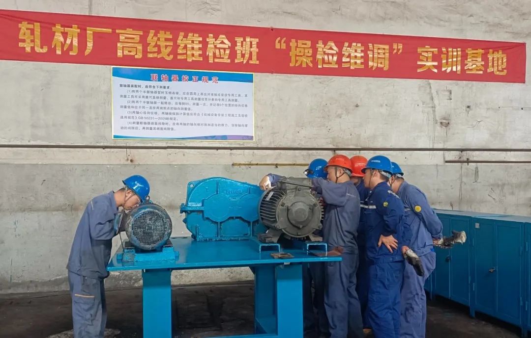 9月份,軋材廠高線產線操檢維調實訓基地建成。該實訓基地主要利用淘汰的舊設備,經維檢班成員使用“拆、卸、改、組、裝、調”六步法,歷經一個月時間在原高線機修間建成。建設過程沒有大額資金投入,也沒占用太多生產時間,更沒耗費過多人工,可謂“短、平、快”。