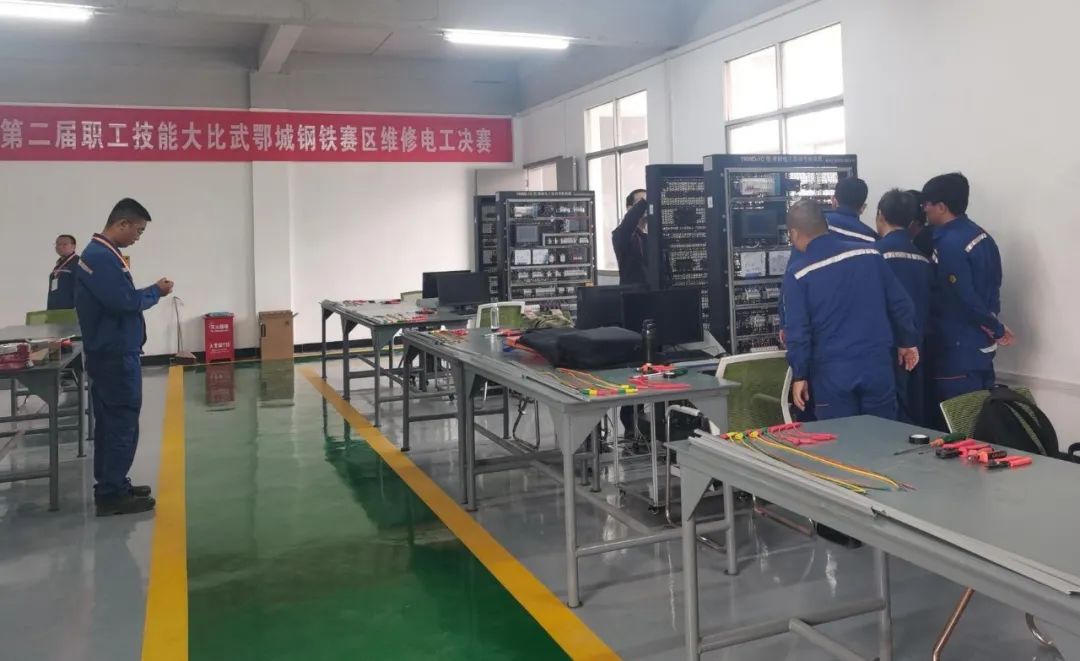 中南鋼鐵第二屆職工技能大比武鄂城鋼鐵賽區決賽包括起重裝卸機械操作工(天車工)、維修電工、化學檢驗工三個賽項,經過前期各單位的預賽選拔,39名選手入圍決賽,根據各賽項競賽大綱確定的范圍進行應知理論考試和應會實操考核。
