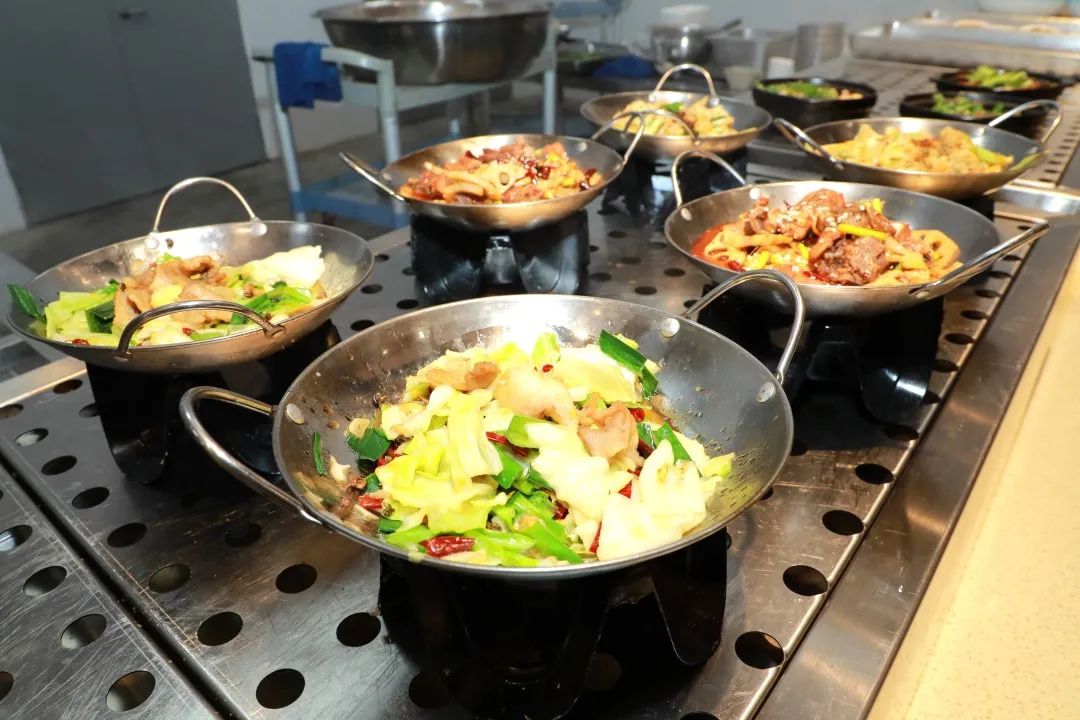 閑趣餐廳對原來的后廚備菜區進行了重新分隔,重新劃分功能區域,并更換了灶具、保溫飯桶、收餐傳送帶。