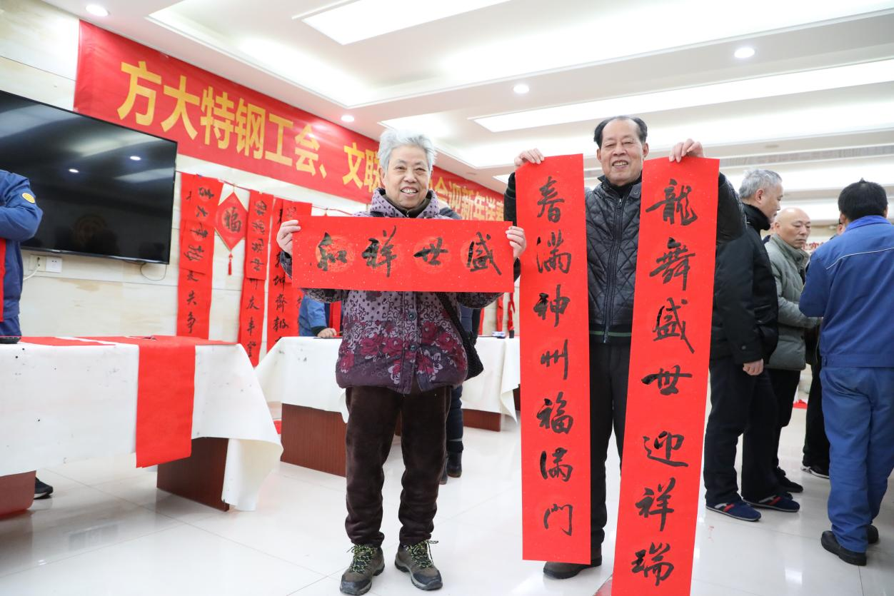 為進(jìn)一步弘揚(yáng)傳統(tǒng)文化藝術(shù),增添節(jié)日喜慶氣氛,方大特鋼工會(huì)、文聯(lián)書畫協(xié)會(huì)組織開展“迎新年送春聯(lián)”活動(dòng),為該公司員工及周邊社區(qū)居民送上新春佳節(jié)的美好祝福。據(jù)了解,送春聯(lián)是方大特鋼傳統(tǒng)活動(dòng)項(xiàng)目,每年春節(jié)前夕,該公司工會(huì)、文聯(lián)書畫協(xié)會(huì)定期開展免費(fèi)送春聯(lián)活動(dòng),深受廣大員工及社區(qū)居民歡迎。此次活動(dòng)共送出春聯(lián)100余幅、“福”字斗方50個(gè)。