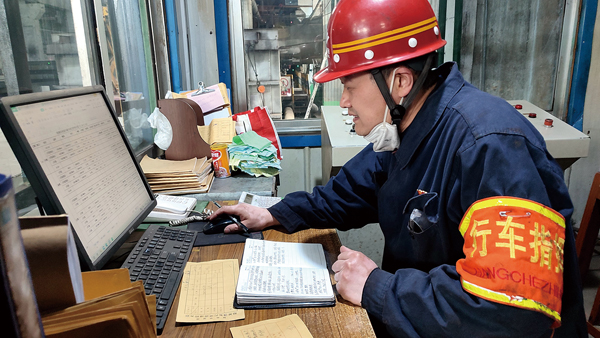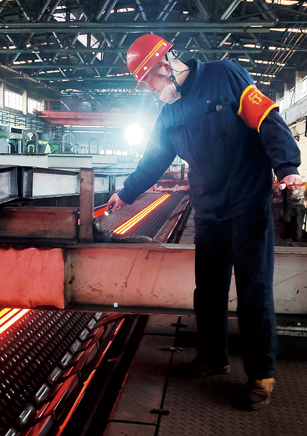 散會后,李生急忙跑到加熱爐了解鋼坯數量和加溫情況,接著又跑到軋機主控室查看上一個班組的軋鋼參數,同時檢查軋機的孔型和軋槽狀況。等看到收集工序的工作穩定推進后,李生又急忙跑到軋機上取樣,到頂鍛房對鋼材樣品進行打頂鍛,觀察鋼材有沒有裂紋和拉絲等異常,并對樣品進行登記和拍照留存。在做好上述這些基礎工作的同時,他還經常向周圍人伸出援手,也會見縫插針地去檢查其他工作人員的安全作業情況。到了晚上21時,他終于坐回了加熱爐主控室的操作臺,吃起了從家里帶來的晚飯。