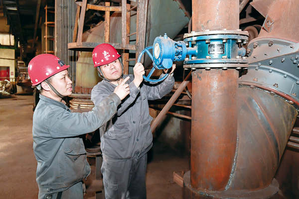 圖為該作業(yè)部職工在操作風量調節(jié)閥門。