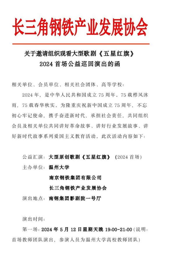 大型歌劇《五星紅旗》2024首場巡演即將亮相南鋼