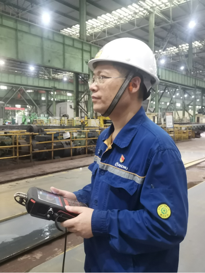 我主要負責對特殊鋼種或用戶有探傷要求的鋼板使用設備進行鋼板內部缺陷探測,大家打趣的叫我“鋼板醫生”。