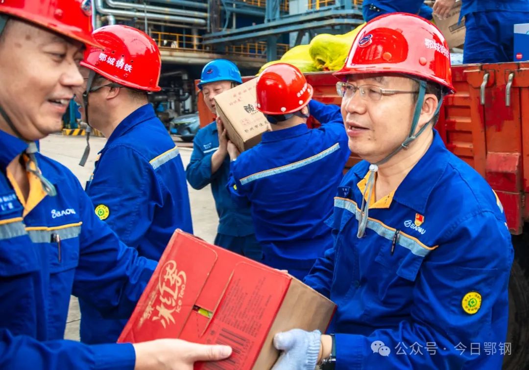 總裁、黨委副書記陸隆文,副總裁徐東明一行先后來到煉鐵廠焦化工序東區循環水站、1#高爐爐臺、燒結機主控樓,為現場職工送上慰問物資,送去公司對一線職工的關愛。