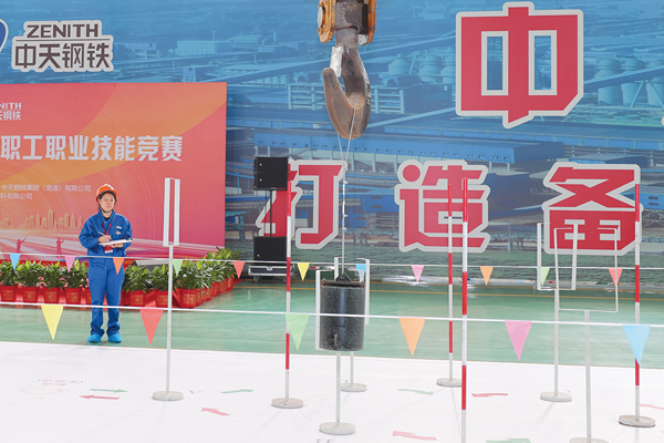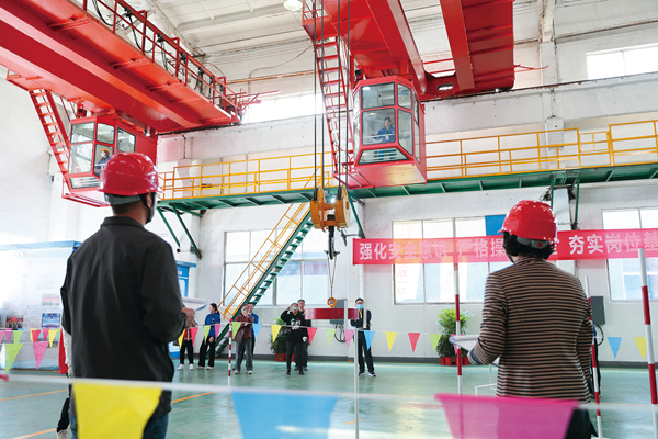 圖為2020年蔣彩琴參加江蘇省常州市第十五屆職工技能競賽“中天鋼鐵杯”天車工技能比武大賽。
