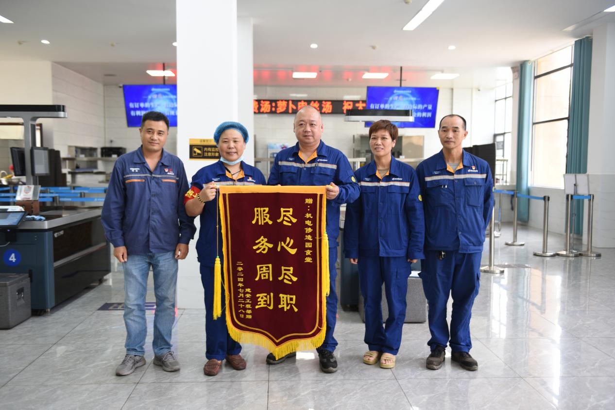 當(dāng)問及王書記為何會想到送錦旗之事時,他滿是高興地說:“近幾個月來,我們維檢中心建安工程隊的主責(zé)主業(yè)是服務(wù)主體生產(chǎn)單位的,并且是為生產(chǎn)單位提供保障的。日常性事務(wù)繁忙,每天中午都要召開調(diào)度會,經(jīng)常耽誤我們工程隊干部和員工的正常用餐時間,有時接近中午一點才來食堂用餐。食堂方面不但沒有怨言,還想方設(shè)法提供暖心的服務(wù),甚至還為部分員工提供稀飯、豆?jié){、包子、饅頭等個性化服務(wù)。這個讓我們在每天的食堂用餐時,充分感受到了食堂方面在服務(wù)和菜品上都是費心費力的,并讓我們深切感受到了‘有溫度、有人文、有關(guān)懷’大家庭的溫暖。所以我們也想到了要用送一面錦旗的方式,來表達一下大家內(nèi)心的感激之情,也能表達我們與兄弟單位的友情。”