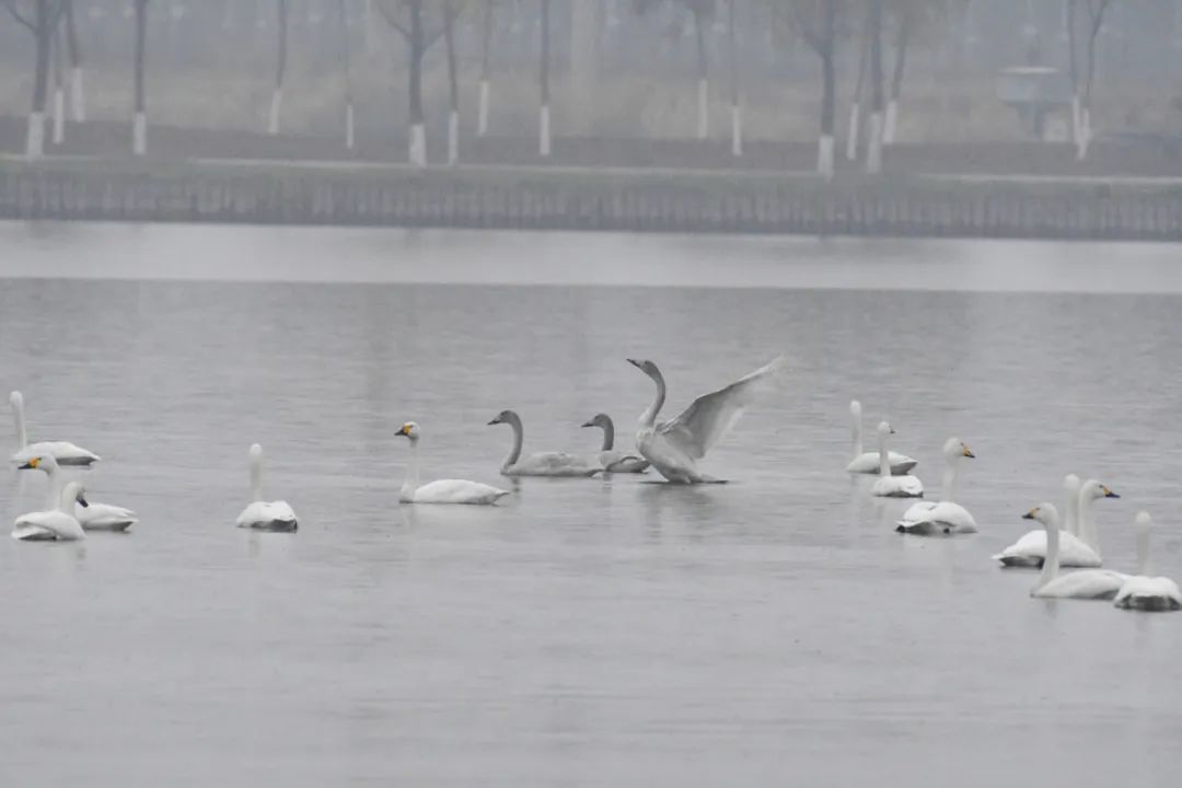 在微風輕拂的湖面上,天鵝展現出優雅至極的姿態,它們有的伸長脖頸,似在瞭望這一方新的天地;有的振翅低飛,與湖水親密接觸;有的則悠閑地劃水,在湖面上留下一道道漣漪。這些美麗的精靈,仿佛是大自然對晉南鋼鐵生態環境治理成果的褒獎。