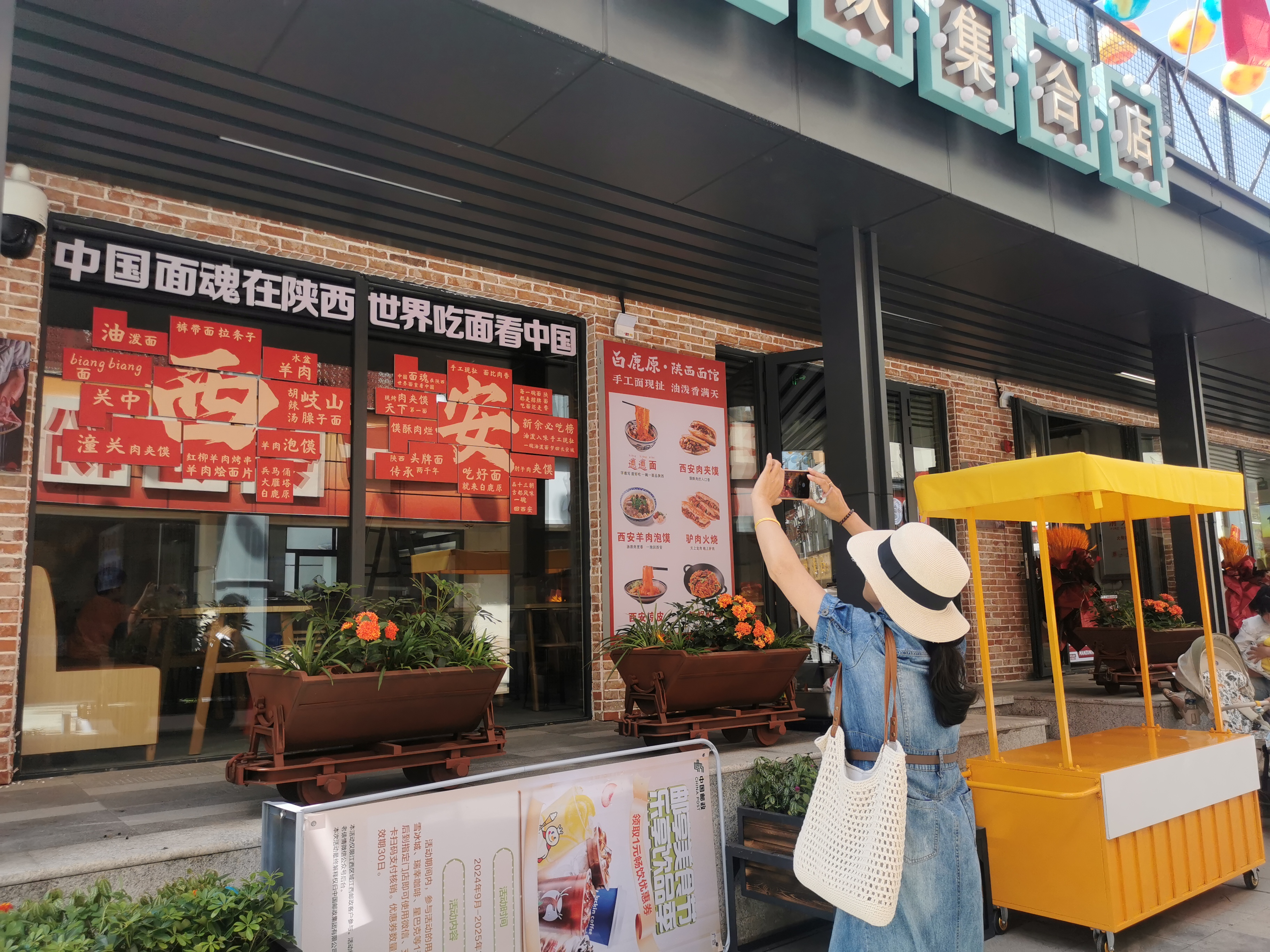 圖為一位游客在新鋼1958記憶街區(原名新鋼美食步行街)西安面館前駐足打卡留念