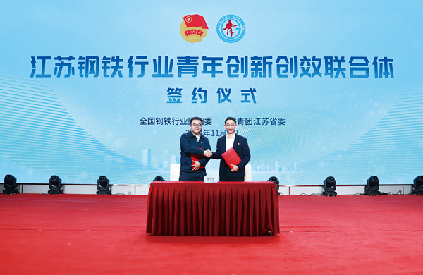 為團(tuán)結(jié)引領(lǐng)廣大青年積極投身產(chǎn)業(yè)轉(zhuǎn)型升級,助力高質(zhì)量發(fā)展,全鋼團(tuán)指委與共青團(tuán)江蘇省委計劃圍繞特色優(yōu)勢產(chǎn)業(yè),成立江蘇鋼鐵行業(yè)青年創(chuàng)新創(chuàng)效聯(lián)合體,為推動中國式現(xiàn)代化江蘇新實踐“走在前、做示范”貢獻(xiàn)青春力量。圖為全國鋼鐵行業(yè)團(tuán)指委與共青團(tuán)江蘇省委簽署合作框架協(xié)議。