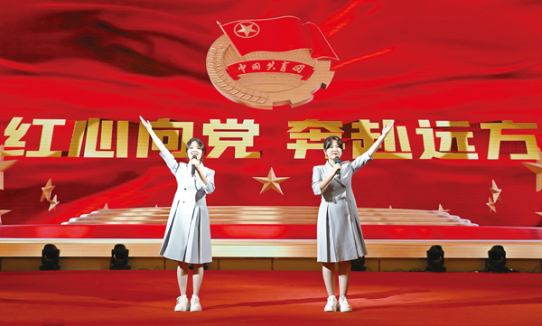 圖為南鋼職工表演詩朗誦《穿越時空的對話》。