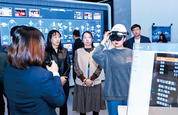 會后,團(tuán)干部參觀了南京鋼鐵博物館、南鋼智慧運營中心、南鋼未來鋼鐵智造館,感受南鋼“鋼鐵與智能科技”的深度融合。圖為團(tuán)干部代表試用南鋼自主研發(fā)的安全帽。