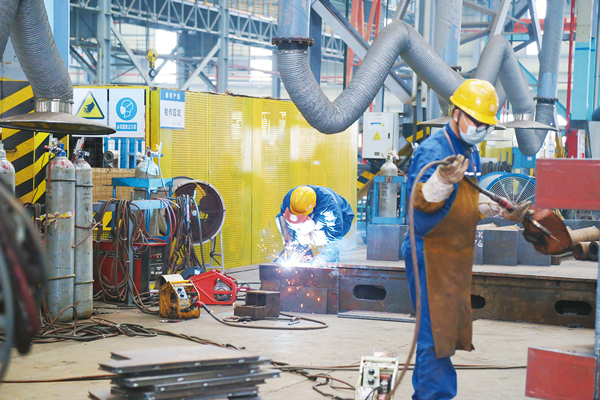 新鋼維檢中心聚焦縮短設備故障時間,提高維檢質量,嚴控費用,并大力推動備品備件自制自修。圖為該中心檢修人員利用空閑時間制作圓盤給料機封閉外罩。