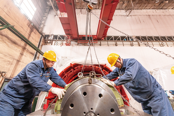 新鋼維檢中心堅持逢修必改,穩步提高維檢質量實現大幅降本目標。圖為新鋼維檢中心檢修職工對硅鋼薄板事業部精軋作業區F1、F2、F3電機進行擴容改造。