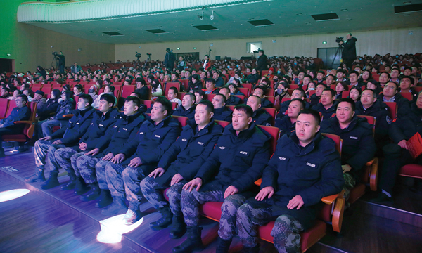 圖為來自鞍鋼集團、鞍山市的近千名干部職工群眾共同觀看演出。
