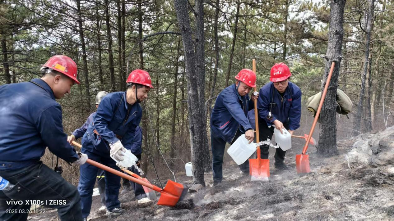 持續增援,強化保障,守護青山。由于大部分引燃物為具有油性的松針、灌木,火情雖得到控制,但形勢仍然嚴峻、不容疏忽。3月25日—27日,黃山煤業先后組建了第2支、第3支、第4支滅火救援隊和1個后勤保障隊,220多人投入“戰斗”。在滅火指揮部的指令下,這3支救援隊伍分別由生產副礦長和安全副礦長領隊,奔赴長治平順縣莊和上村、新城村、壺關縣廟郊村、沙駝嶺等地支援。同時,該公司后勤保障隊積極運送救援物資,精心準備食物、水、藥品等,為救火前線人員做好后勤供應。救援隊全員手持鐵鍬、水壺排成單列縱隊,在消防隊員引導下挺進火場。現場濃煙裹挾著熱浪撲面而來,火舌在樹梢間肆虐翻卷。隊員們分工協作,有的用水壺澆滅余燼,有的用鐵鍬拍打火苗壓制明火,一次又一次將負責區域的明火全部撲滅,確保隱患徹底消除。