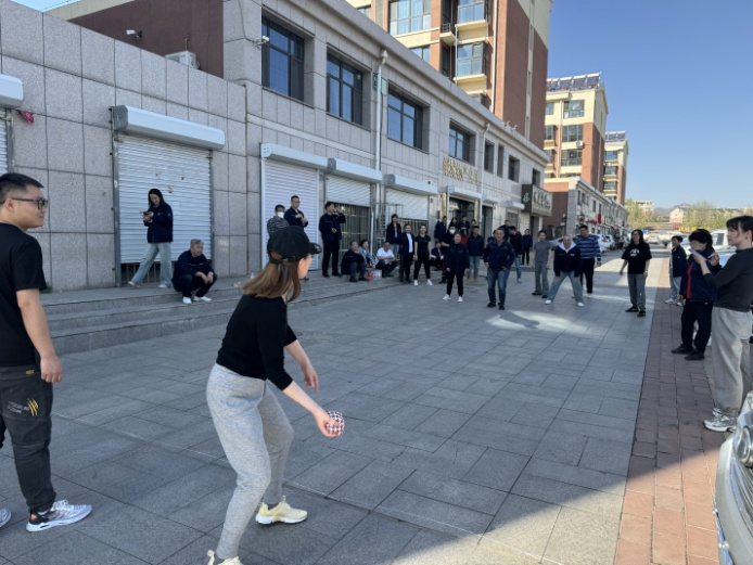 “加油!保持節奏!”踢毽子比賽現場,五彩的毽子在參賽者腳間上下飛舞。隊員們圍成圓圈接力踢毽,毽子每一次平穩傳遞都引來陣陣喝彩。三位隊員配合默契,以三分鐘206個的成績驚艷全場。打沙包場地則成了“速度與激情”的戰場。由物業聯合隊和綜合隊組成的對抗賽尤為激烈:攻方隊員瞄準時機奮力擲包,守方隊員左閃右躲、騰挪跳躍,當沙包被穩穩接住時,全場爆發出歡呼。