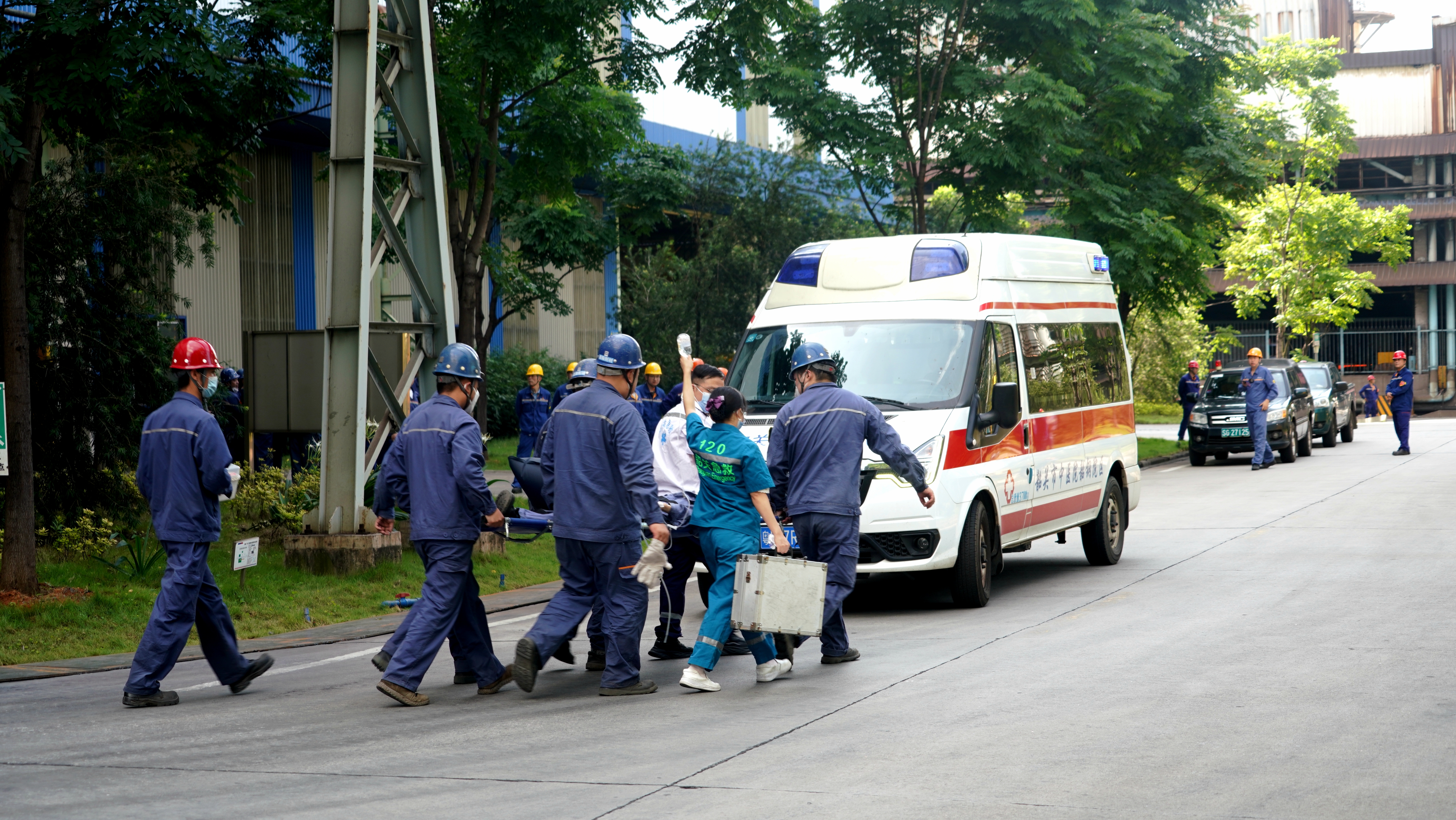 煉鋼廠和安保部相關(guān)人員、公司應(yīng)急大隊、煤氣防護(hù)站、金藝環(huán)境監(jiān)測、韶關(guān)市中醫(yī)院韶鋼院區(qū)醫(yī)療急救隊、曲江區(qū)消防救援大隊等共同參與了現(xiàn)場演練。