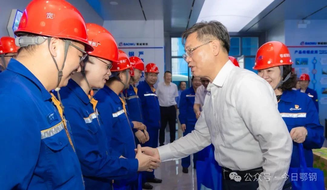 7月10日下午,胡望明來到鄂城鋼鐵,深入寬厚板廠、操檢維調實訓基地,慰問一線員工,實地調研生產組織、防暑降溫等舉措落實情況,并召開現場辦公會。