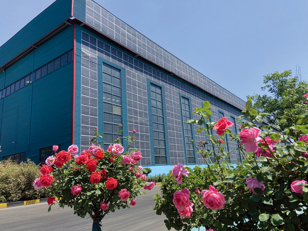 圖為晉南鋼鐵廠房墻體鋪滿光伏板。