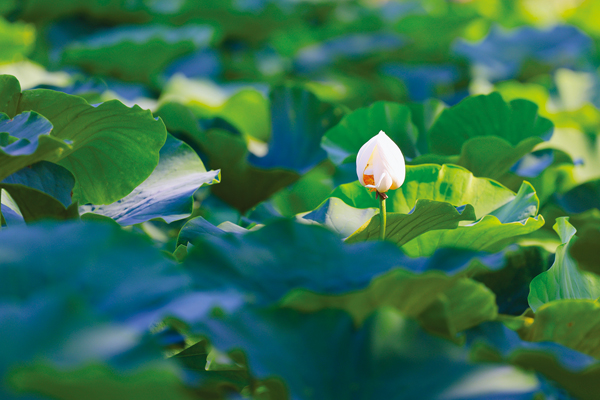 圖為該公司荷花池中引人注目的“小荷才露尖尖角”。
