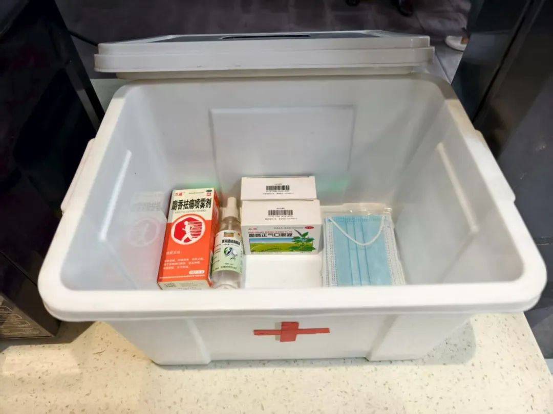 考慮到秋老虎天氣仍可能出現中暑、腸胃不適等情況,每個就餐點設有專門的“應急醫藥箱”,如果大家在就餐時感到頭暈、惡心或身體不適,可隨時向工作人員求助,我們會第一時間為你提供免費幫助。