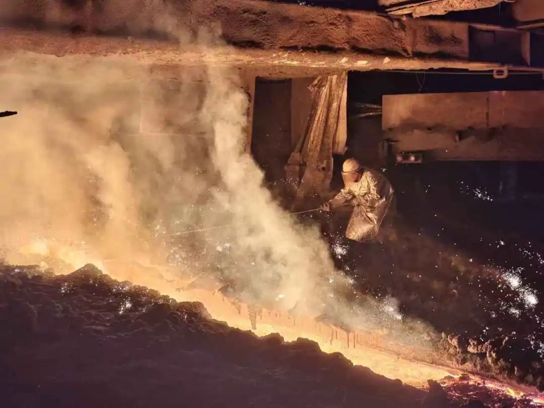 盛夏,驕陽把天空烤成熾白,空氣像被拉緊的鐵絲,滾燙得幾乎能聽見“滋滋”聲。1500℃的鐵水在高爐里翻涌,重慶鋼鐵公司煉鐵事業部高爐爐臺前一群“銀甲”戰士——防護服在熱浪中閃著金屬光——正與鐵花共舞。