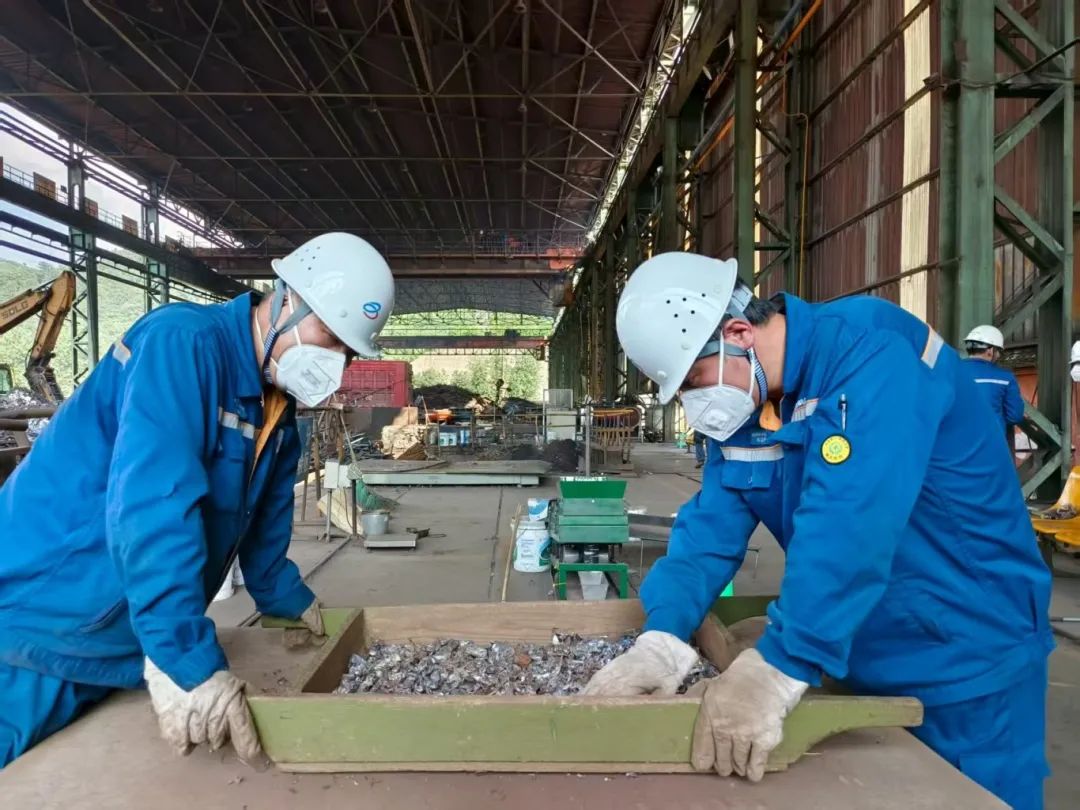 制樣車間如同一座巨大的開放式“蒸籠”,為保證煤炭試樣精準度,連電扇都不能使用。悶熱的環(huán)境中,張紹強和尹鑫弓著腰,反復混勻縮分,“每批樣品必須3次混勻,這是鐵律!”,汗水順著防塵面罩邊緣滴落,在滾燙的制樣臺上瞬間蒸發(fā)。750公斤煤樣處理下來,淺藍工裝早已被汗水浸透成深藍,緊緊貼在身上。午后的廢鋼場更似巨型熔爐,驗收員曹亮穿梭在料場,一天要查驗70余車廢鋼,拆解10余個暗藏隱患的密閉容器。“這玩意兒進了轉爐,就是顆定時炸彈!”他抹了把臉,汗水混著灰泥在臉頰沖出溝壑,藍色工裝上泛著層層鹽霜。高溫炙烤下,檢驗頻次絲毫未減,他們以鋼鐵般的意志和過硬的“火眼金睛”,鑄就了生產(chǎn)安全與質量防線的堅實堡壘!