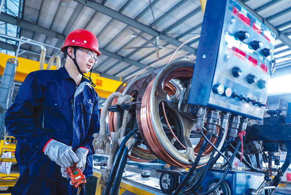 圖為金元素工人正在進行鋼板探傷檢測。