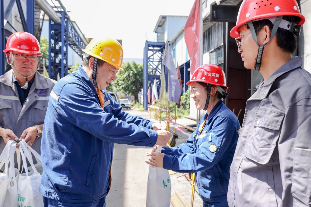 每到一處,領導們都與他們握手交談,詳細詢問檢修工作進展、安全及高溫防護措施等情況,并將精心準備的慰問品遞到員工手中,反復叮囑大家要科學安排作息時間,勞逸結合,在確保身體健康和作業安全的前提下推進工作。