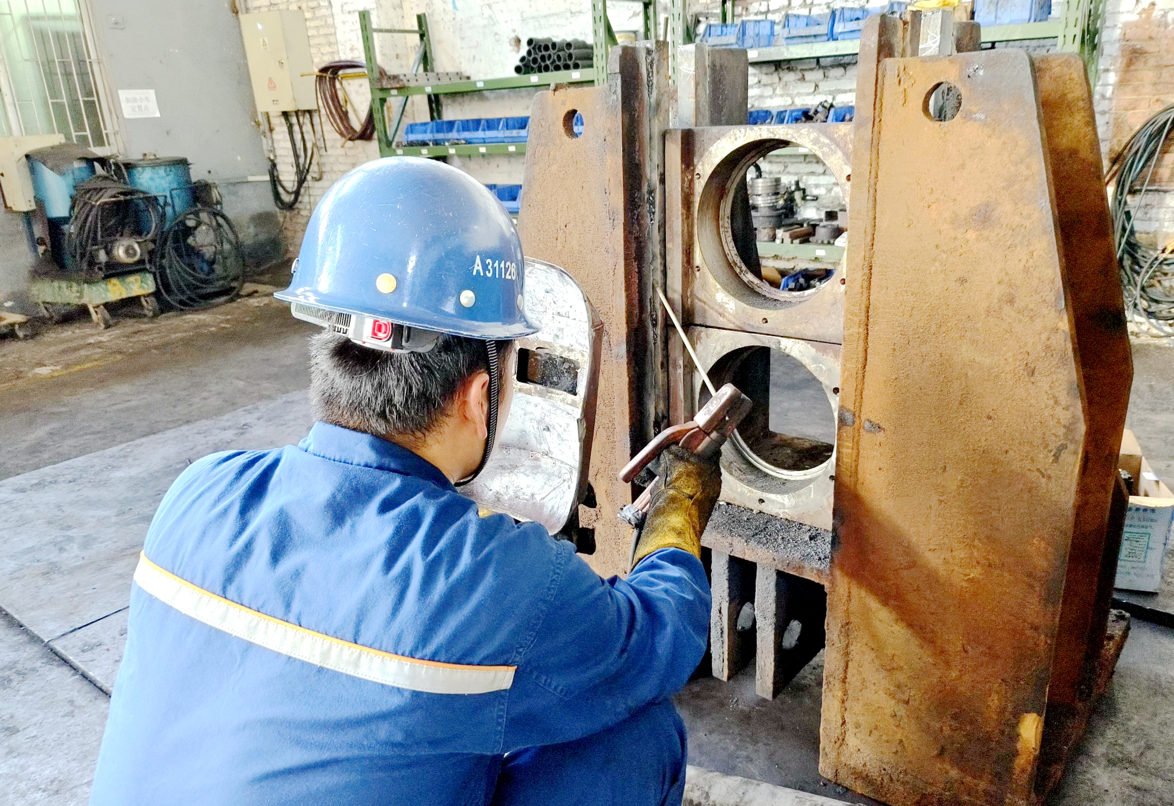 對于因長期使用出現磨損的備件,維檢車間不盲目更換新品,而是以“精準修復”實現降本。棒一2線3號軋機機架由于長期所受負載較大,造成底部滑軌及滑板等部位磨損嚴重,在生產過程中經常造成軋機機架晃動、走位、甚至引起堆鋼等故障的發生,該機架功能精度缺失,不利于安全生產。車間組織人員采用水平標高尺對軋機底座進行測量,通過標高數據得出底座磨損數據,按照磨損數據對滑軌底座及軋機底座軌道進行補焊并修磨處理,不僅恢復了設備功能精度,還直接節約備件采購資金近20萬元。