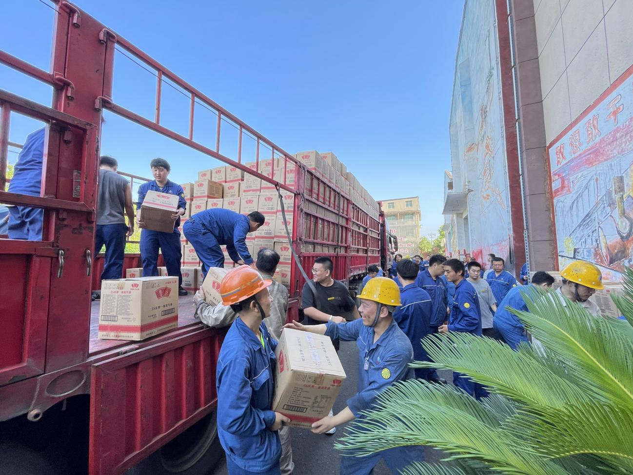 走進(jìn)各單位的福利發(fā)放點(diǎn),喜慶的氛圍撲面而來:鮮紅的國旗在現(xiàn)場迎風(fēng)招展,員工們歡快地從車上卸下福利品,一排排碼得整整齊齊。油亮的食用油桶、包裝精美的月餅禮盒、袋裝飽滿的干木耳錯(cuò)落擺放,遠(yuǎn)遠(yuǎn)望去像一片“幸福補(bǔ)給站”。
