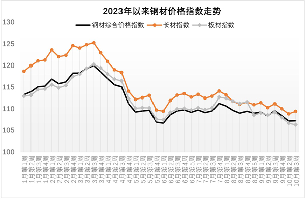 10月16日—10月20日當周,國內鋼材綜合價格指數上漲,長材價格指數有所上漲,板材價格指數繼續下降。
