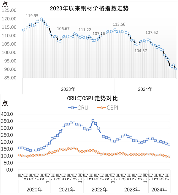 9月2日—9月6日當周,中國鋼材價格指數(shù)由升轉(zhuǎn)降,長材價格指數(shù)、板材價格指數(shù)均有所下降。