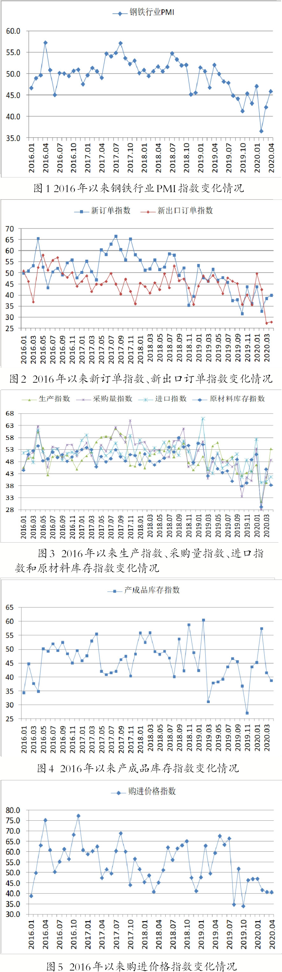4月份,各地在落實常態化疫情防控下的復工復產工作,建筑業和制造業復工率都有所提高,鋼材需求在3月份的基礎上繼續回升,但回升幅度相對較小,且當前需求水平低于歷年同期。新訂單指數為39.9%,較3月份上升1.4個百分點。由于疫情影響仍在持續,重點項目和基建投資帶動作用尚未完全發揮出來,鋼材市場需求整體仍相對不足。與此同時,由于國外疫情暴發,外部需求明顯下降,新出口訂單指數為27.8%,連續2個月低于30%。