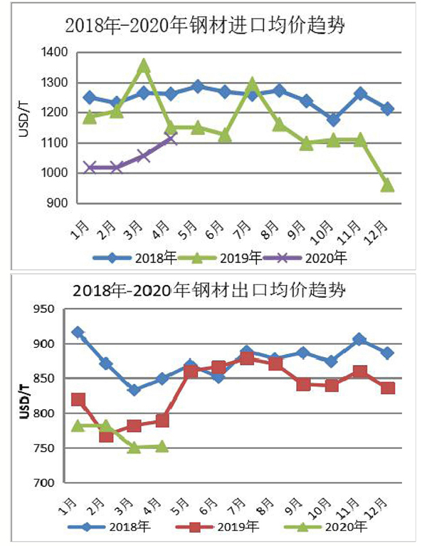 1月~4月份,中國(僅指中國大陸,下同)進口鋼材418.4 萬噸,同比增長7.4%;進口鋼坯220.8 萬噸,同比增長655.7%;進口鋼錠1.9 萬噸,同比增長106.9%。折合粗鋼進口約659 萬噸。1月~4月份,中國進口鋼材均價為1051.8 美元/噸,同比下降13.8%;進口鋼坯均價為437.9 美元/噸,同比下降49.8%。