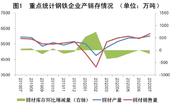1月~7月份,重點統計鋼鐵企業同2019年1月~7月份相比,國內鋼材銷售量的增幅大于鋼材產量的增幅,表明重點統計鋼鐵企業增產的鋼材在國內市場得到了消化,同時國內市場還消化了一部分出口轉內銷的鋼材和一部分鋼材庫存。
