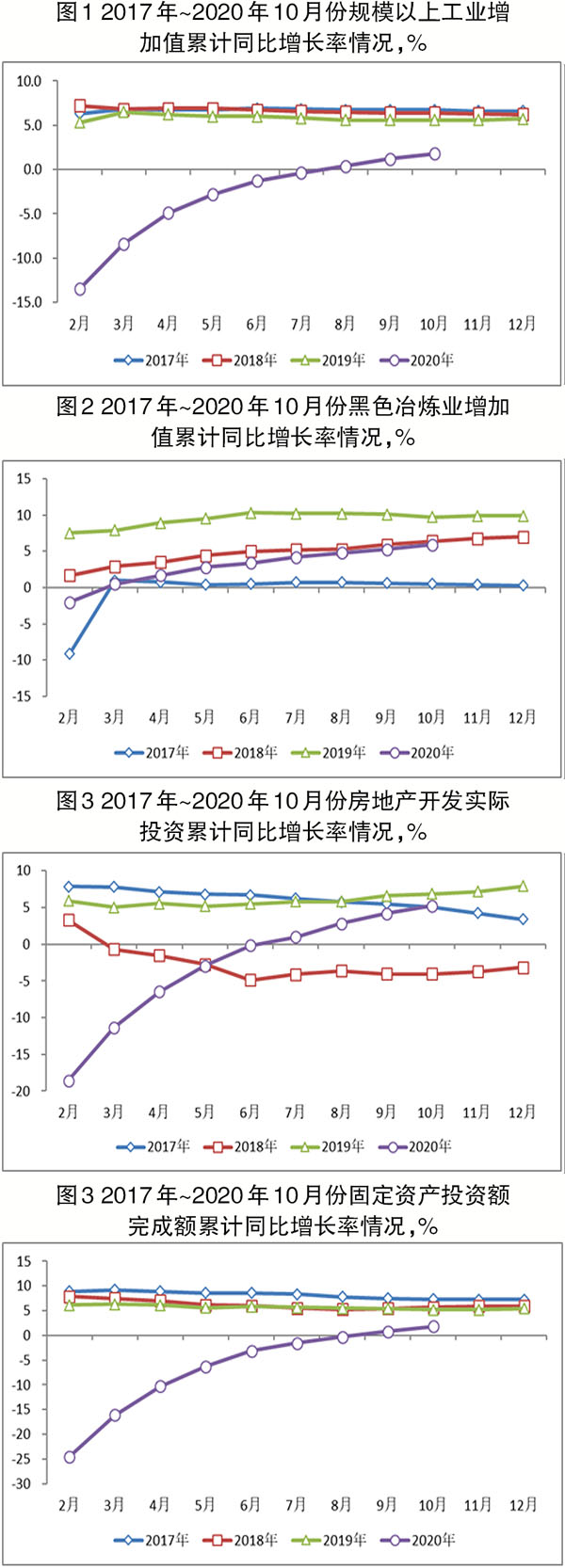 1月~10月份,固定資產(chǎn)投資、房地產(chǎn)投資名義及實(shí)際增速在正增長(zhǎng)區(qū)間加速上升,民間投資積極性逐步恢復(fù),國(guó)有控股投資拉動(dòng)作用顯著,基建投資累計(jì)同比增速轉(zhuǎn)正,黑色冶煉業(yè)固定資產(chǎn)投資累計(jì)同比增速明顯高于下游主要用鋼行業(yè)。