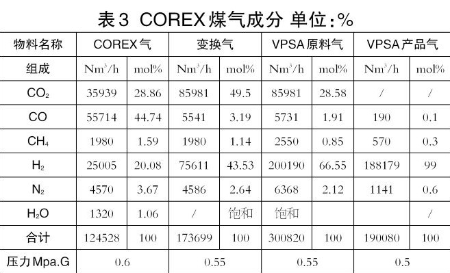 COREX煤氣制氫。熔融還原爐(COREX)以鐵礦石和煤炭為原料,在生產(chǎn)鐵水過程的同時,產(chǎn)生大量富含一氧化碳和氫氣的COREX煤氣。COREX煤氣成分見表3。