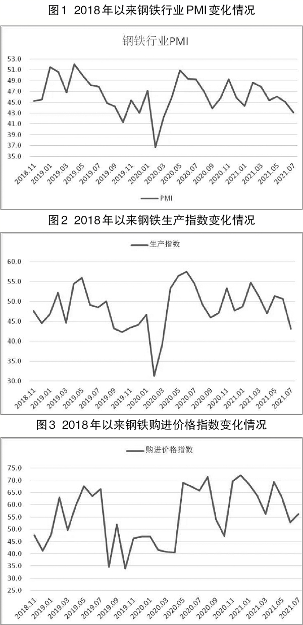 從本會調查、發(fā)布的鋼鐵行業(yè)PMI(采購經理指數)來看,7月份PMI為43.1%,環(huán)比下降2.0個百分點;分項指數顯示,鋼材生產有所放緩,市場需求繼續(xù)偏弱,市場整體下行壓力加大。預計市場需求在8月份有所回升,供需兩端平衡發(fā)展,鋼價有一定上行空間。