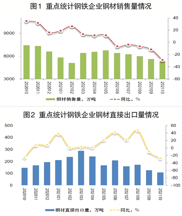 上述統計數據表明:受限產、限電、下游行業用鋼需求強度減弱等因素的影響,重點統計鋼鐵企業鋼材連續5個月銷售同比、日銷環比下降。5月份以后,隨著國家取消鋼材出口退稅,鋼材出口環比連續下降,10月份,重點統計鋼鐵企業鋼材出口環比下降15.22%。10月份,鋼材產銷率低于100%,鑒于季節性、環境性等多重因素對需求端的影響,鋼鐵供需變化仍需密切跟蹤和關注。
