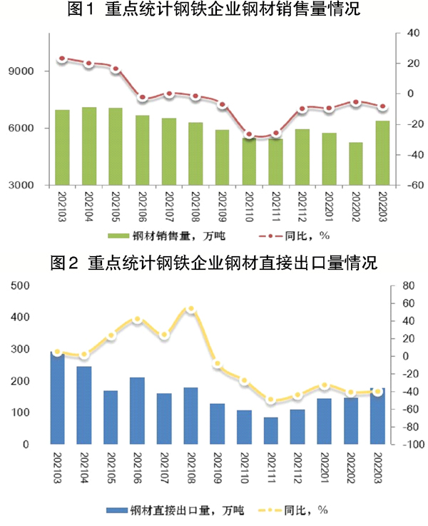 上述統計數據表明:受供暖季錯峰生產、新冠肺炎疫情散點多發、人員和物資流通受限等多重因素疊加影響,市場需求相對較弱,鋼鐵生產處于較低水平,重點統計鋼鐵企業鋼材銷售同比連續下降,但鋼鐵生產與消費指標的月度環比呈回升態勢,產銷率、日銷環比上升,供需基本均衡;國際環境復雜,鋼鐵進出口同比連續下降。但3月份鋼材直接出口量環比上升20.82%,近4個月呈增長態勢。