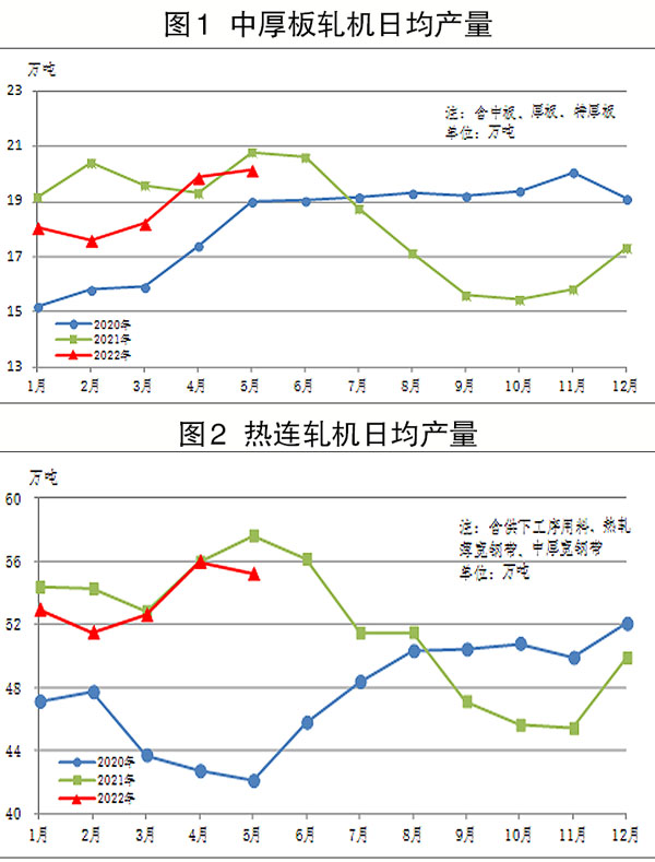 5月份,中厚板軋機生產特厚板、中厚板624萬噸,同比減少20萬噸,下降3.1%。1月—5月份,累計生產特厚板、中厚板2838萬噸,同比減少139萬噸,下降4.7%。