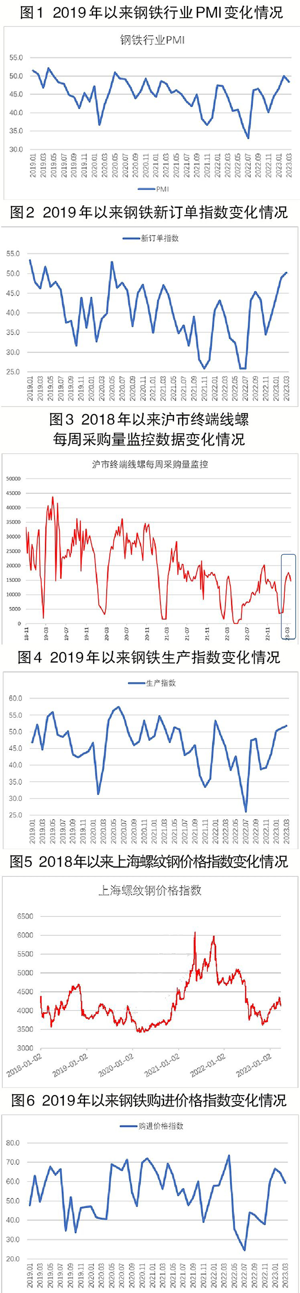 從中物聯(lián)鋼鐵物流專業(yè)委員會調(diào)查、發(fā)布的鋼鐵行業(yè)PMI(采購經(jīng)理指數(shù))來看,3月份為48.4%,環(huán)比下降1.7個百分點,結(jié)束連續(xù)3個月環(huán)比上升勢頭,再度回落至50%以下,顯示鋼鐵行業(yè)運(yùn)行仍面臨波動。分項指數(shù)變化顯示,市場需求持續(xù)恢復(fù),但恢復(fù)力度不及企業(yè)預(yù)期。鋼廠生產(chǎn)保持上升,鋼材價格沖高回落,3月份整體有所下降。值得關(guān)注的是,鋼廠對后市預(yù)期有所偏緊,原材料采購活動也趨于謹(jǐn)慎。預(yù)計4月份,鋼材市場需求繼續(xù)上升,鋼廠生產(chǎn)小幅增長。鐵礦石價格繼續(xù)回落,鋼材價格沖高動力不強(qiáng)。